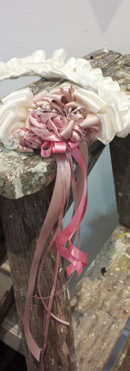 WHITE SATIN ROSEBUDS & DUSTY PINK RIBBONS